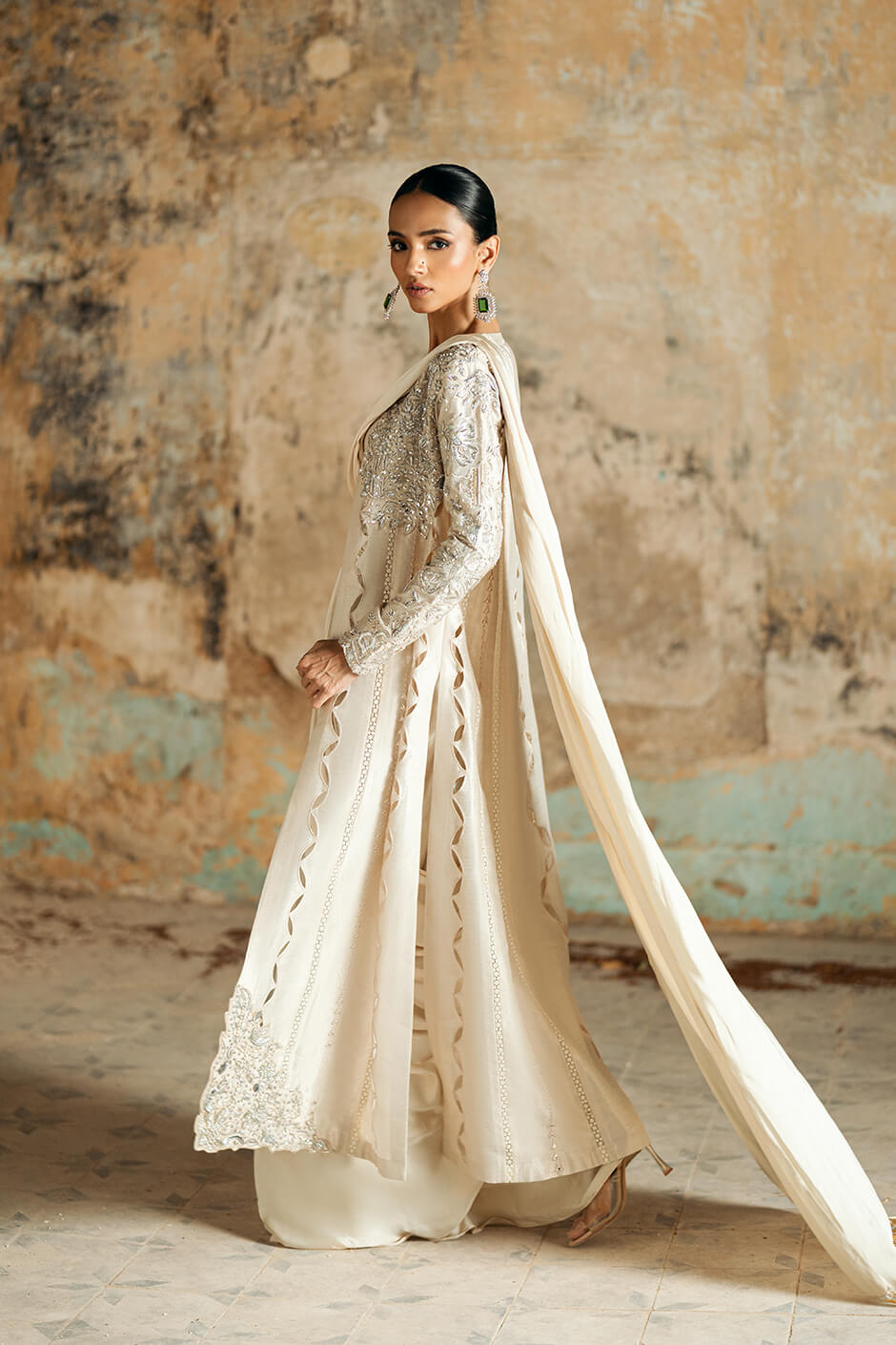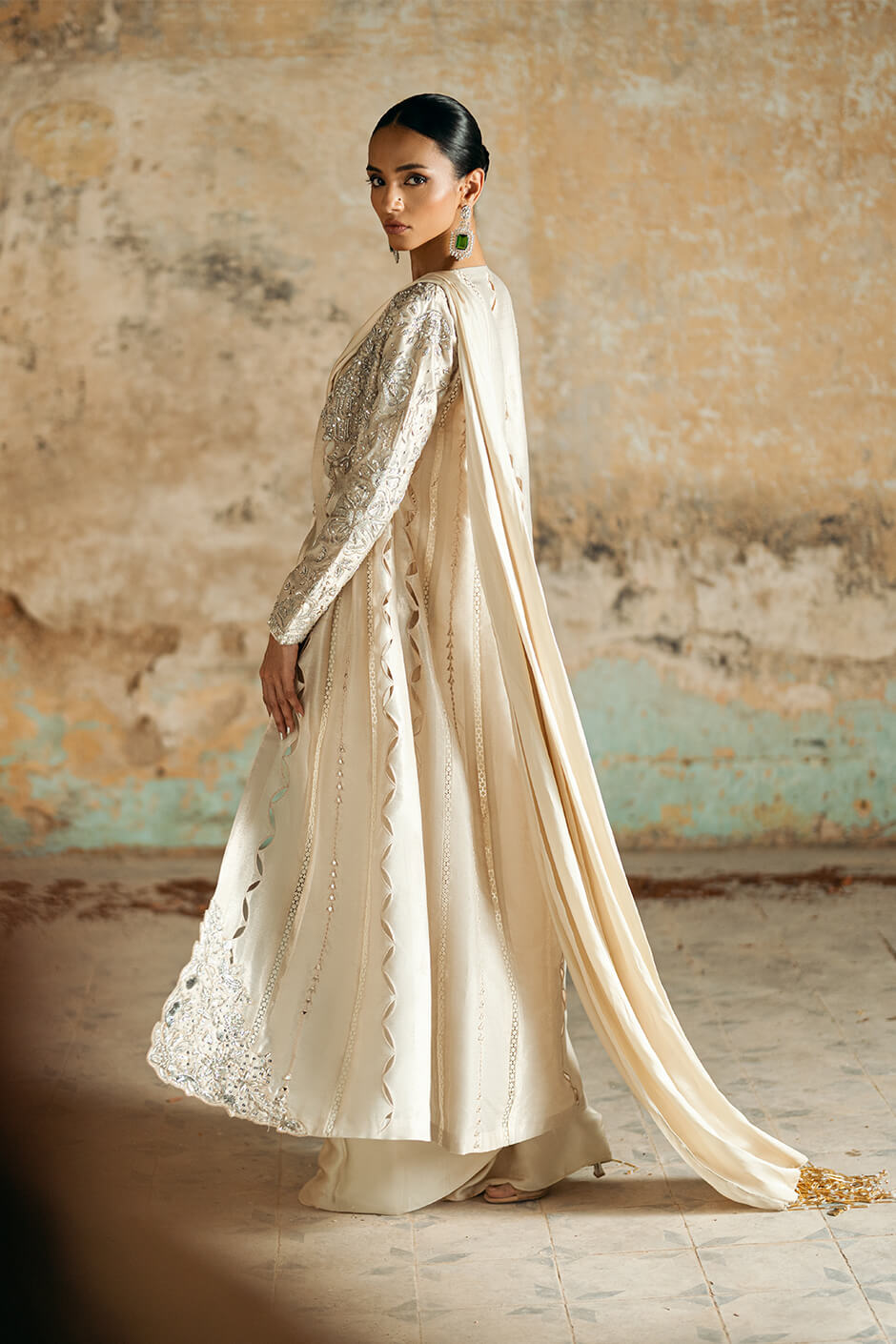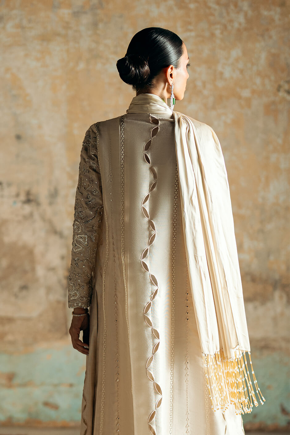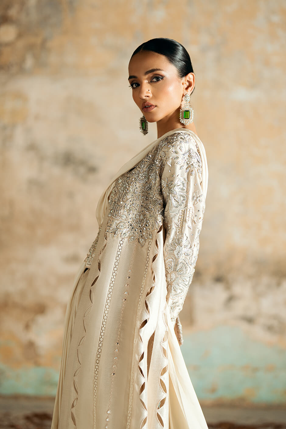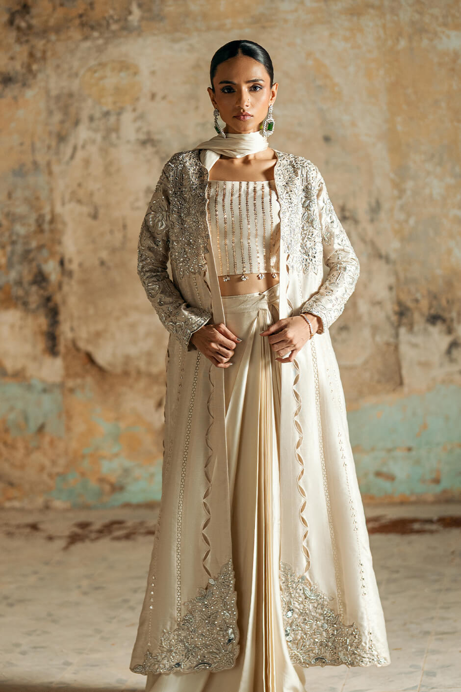 WORK: JACKET: kora dabka pearls sequence work cutwork hint of mirror