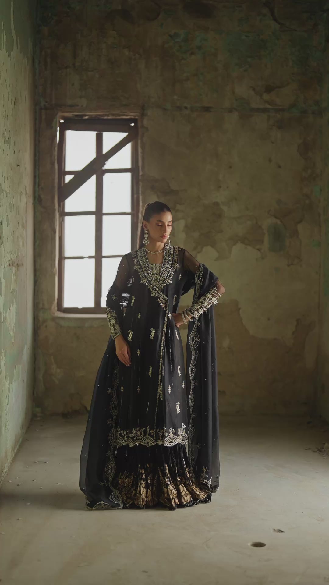 This exquisite ensemble features a delicate frock crafted from sheer organza, layered over a luxurious cotton silk crush base that adds subtle texture and depth. Adorned with shimmering sheesha work and intricate hand embellishments, it captures light beautifully, creating a radiant aura. Paired with a flowing pure organza dupatta, this look embodies graceful elegance with a modern, artisanal touch.