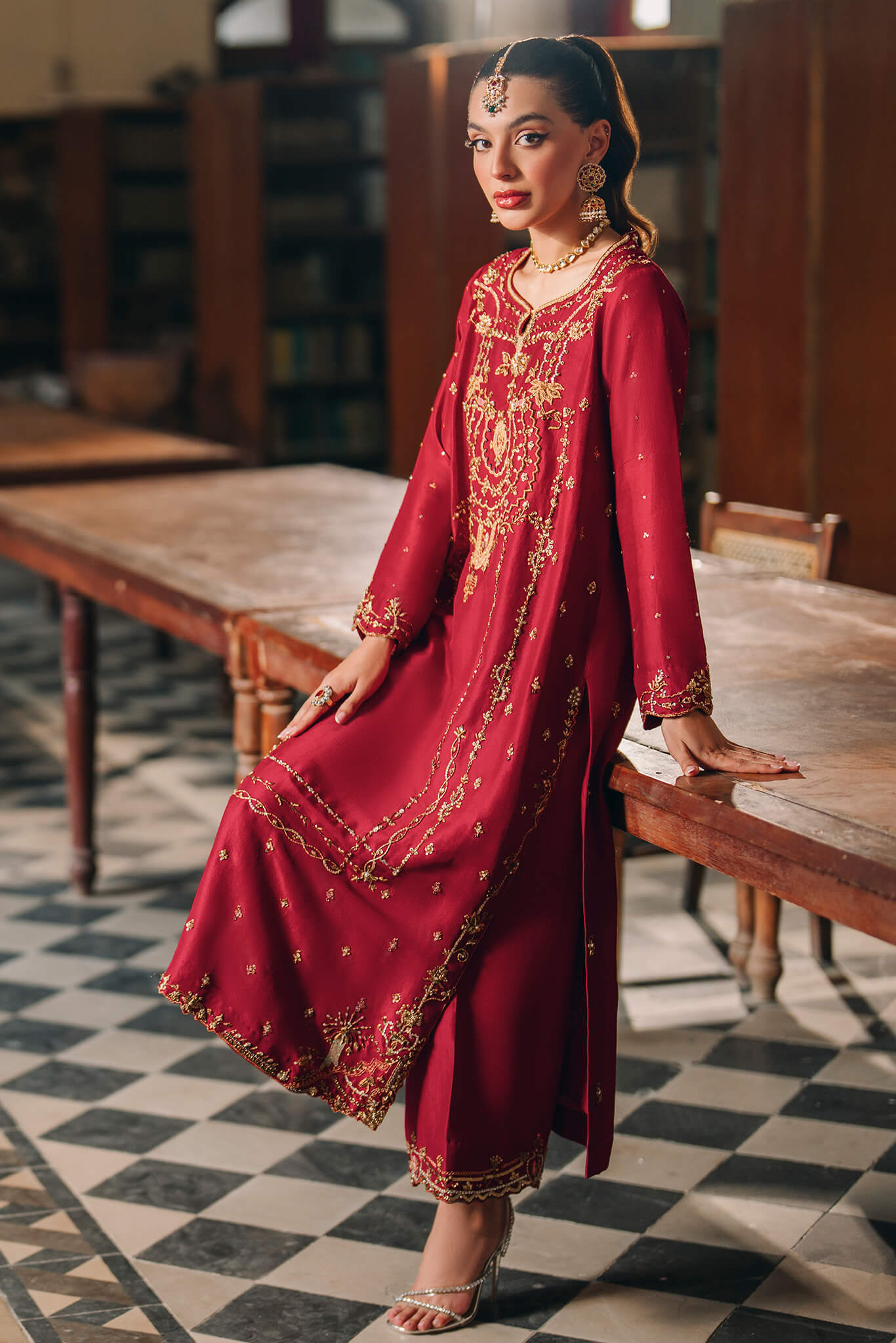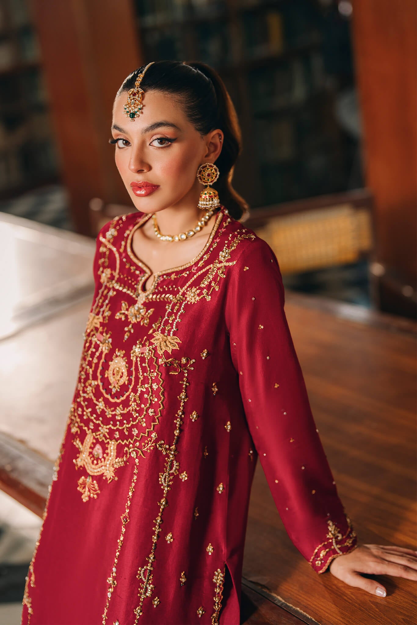 Ruhi’ redefines classic elegance . Crafted from pure 80G raw silk in a striking scarlet hue this