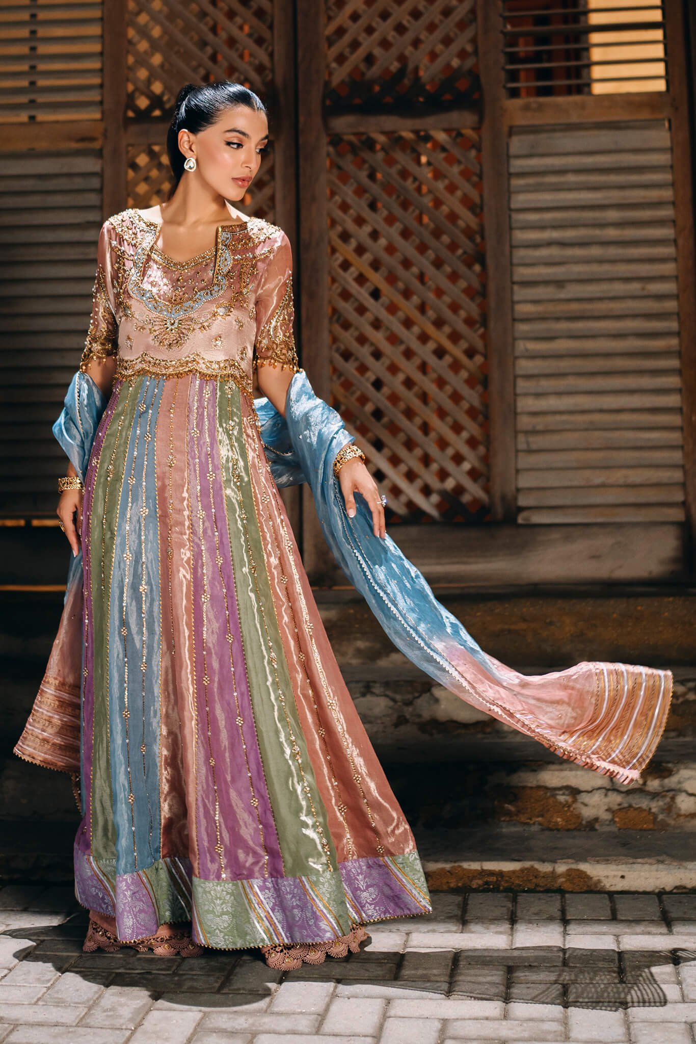 peach, and mint green—each panel hand-detailed to perfection. Finished with a self jamawar Dhaka pajama and an ombre dupatta, ‘Samaira’ is designed to make an unforgettable impression at any special occasion.